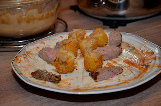 En al lijkt dit nergens op, het is een overschotje rosbief, kroketje en champignonroomsaus.